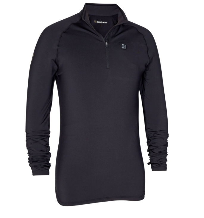 Deerhunter Heat undertröjan drivs av en laddningsbar powerbank med 3 värmeinställningar för komfort hela dagen, oavsett väder. Det integrerade värmesystemet har två värmeelement på baksidan, där vi känner kylan mest. Den uppvärmbara undertröjan har dragkedja i halsen. Den är härligt mjuk och bekväm att ha på sig, och den kan också maskintvättas.
