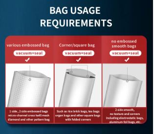 The separate nozzle function for packaging completely smooth bags is ideal for straightforward packaging, such as sandwiches, without unnecessary compression. The two nozzles that extend when you select the "flat bag" mode are very user-friendly: simply slide the bag onto the nozzle, close the lid, and activate after the chosen number of seconds or in manual mode. Once satisfied with the vacuum, the machine retracts the nozzles and seals the bag.