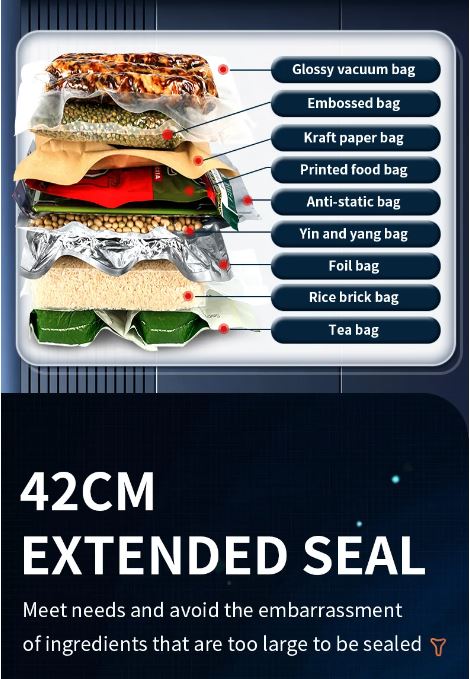 In our online store, you'll discover a premium vacuum sealer designed for commercial use, capable of performing up to 800 seals daily on bags with an impressive width of 420 mm. This machine seamlessly combines outstanding features with top-notch build quality, delivering reliable performance regardless of the type of bags you use or whether you're packaging dry or moist foods like fish. In our experience, this is the best vacuum sealer we've tested so far, featuring robust construction, well-thought-out features, and impressive welding capabilities in both wet and dry conditions.