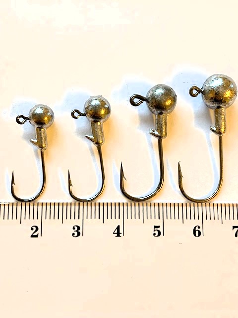 Available in four sizes: Jig heads 10pcs, 1.75g Lead-coloured hook:6# Jig heads 10pcs, 2.5g Lead Hook:4# Jig heads 8pcs, 3.5g Lead Hook:2# Jig heads 8pcs, 5g Lead-coloured hook:1#