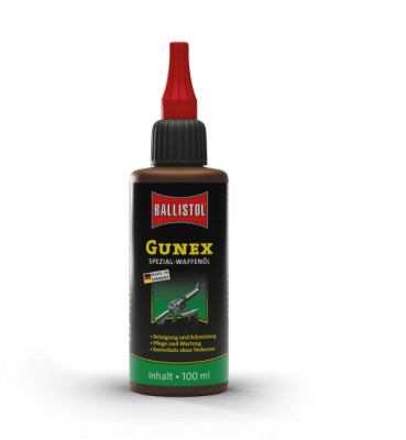 Gunex vapenoljespray är den perfekta oljan för långvarigt skydd av rena metalliska delar, även under extrema förhållanden (-50 °C upp till 100 °C). Gunex vapenolja tar bort krut- och tombakrester, säkerställer att hela mekanismen i gevär, pistoler och revolvrar fungerar smidigt, vårdar och skyddar. Hartser från olämpliga oljor upplöses. Gunex vapenolja kryper in mellan metall och fukt, infiltrerar hårfina sprickor, rengör, håller ytor släta, blir inte klibbig eller hartsig heller. Gunex är fri från silikon.
